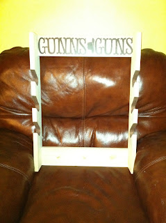Papa Gene built Gunner a Gun Rack for Christmas.  I cut the title out in brown vinyl on my Cricut Expression.